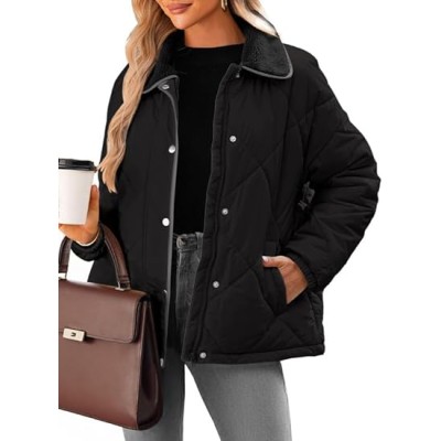 Dokotoo Women's Winter Casual Quilted Jackets Long Sleeve Button Down Puffer Jacket Padded Outerwear Coats
